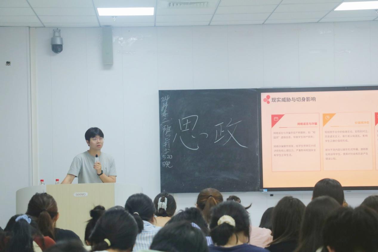 本报讯(记者 汤蒙)5月21日下午,医学部2025年第二期“思想政治教育大讲堂”主题活动在医学大楼A-108教室开展。本期以“筑牢网络意识形态阵地,青年学生的责任与担当”为主题,特邀医学部尤庆老师担任主讲人,24级口腔医学本科一班、24级口腔医学本科二班、24级护理一班全体学生参与本次活动。