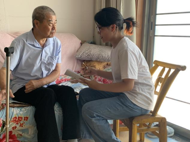 为全面深入了解老年人数字健康服务需求和护理专业学生数字健康素养,实践队采取线上线下相结合的方式,广泛开展问卷调查,调研过程中,实践队成员以一对一的方式,耐心地向老年人解释问卷内容,确保了调研的准确性。