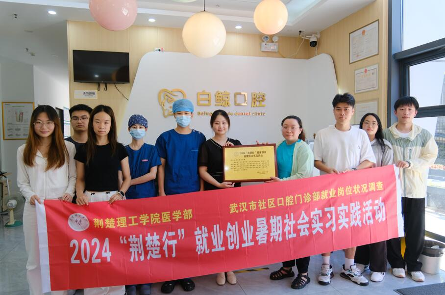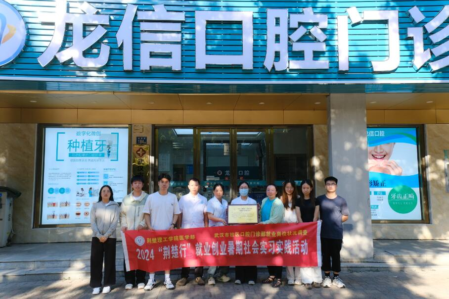为深入贯彻教育部关于高校毕业生就业星空(中国)的重要指示精神,响应教育部关于促进高校毕业生就业创业星空(中国)的号召,积极引导我校毕业生到基层创业就业,到国家重大工程及战略性新兴行业创业就业,2024年8月4日至8月8日,荆楚理工学院医学部口腔医学系“小雏菊健康科普社”开展了为期五天的“荆楚行”就业创业暑期实习实践活动,深入武汉市社区口腔门诊部,调查各门诊口腔的就业岗位相关情况。