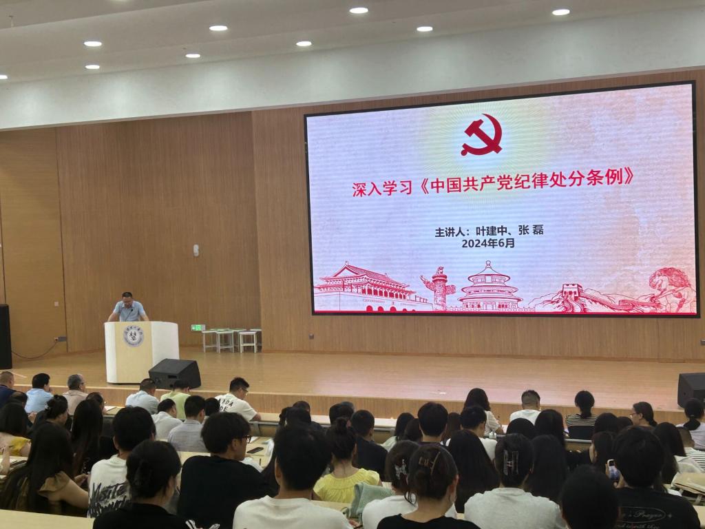 为进一步强化党员干部纪律观念和廉洁自律意识,2024年6月21日,医学部党委常务副书记叶建中在医学部学术报告厅以“深入学习贯彻《中国共产党纪律处分条例》”为主题,为全体党员师生上了一堂详实生动的党课。