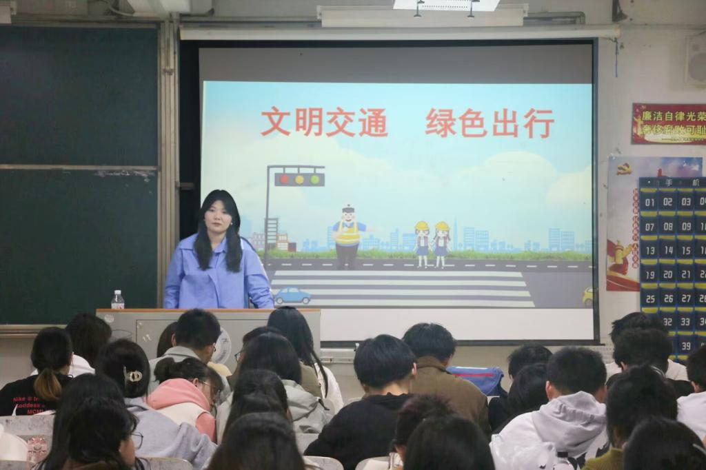 本期讲座以“文明交通,绿色出行”为主题。活动中,李雯燕老师将道路交通安全法律法规与校园日常生活相结合,讲述了许多触目惊心的交通安全事故实例,并着重强调了校园生活交通安全注意事项,并呼吁大家关注校园内的行车安全,规范使用电动车,严格遵守校园行车规定,并提醒外出不坐黑车,注重保障人身与财产安全。