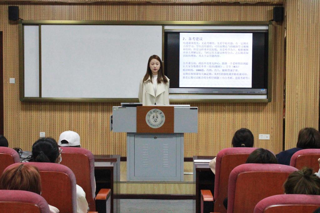 交流会议程分为四项。首先,张逸老师介绍了刘安琪同学和赵雨萱同学的基本情况,并宣布交流会正式开始。第二项,刘安琪同学和赵雨萱同学分别结合自身经历,讲述了网上报名、复习规划和备考技巧这三个部分,分享了自己备考期间遇到的各种问题及解决方法。第三项,刘安琪同学和赵雨萱同学对现场同学提出的问题进行了一一解答。最后张逸老师对本次交流会作总结,鼓励同学们坚持不懈,不断努力,并表示同学们在备考过程中如果遇到任何困惑,可以向老师请教,老师们一定会竭尽全力地为同学们排忧解难、提供服务,预祝同学们能够一战成功。